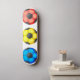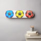 Illustration eines blauen, gelben und roten Fußbalballs stehend in einer Reihe.