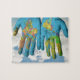 Bunte gemalte Weltkarte in den Händen, Kunst-Foto Puzzle