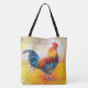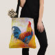 Ein buntes Hahn-Hahn-Digital-Kunst-Ölgemälde. Diese Vogelkunst wird als traditioneller Ölgemäldeblick mit hellen Farben in Blauem, in Rotem, in Orange und Gelb gemacht. Ursprüngliche Kunstmalerei des Viehs. Groß für einen rustikalen Dekor oder jedermann des Bauernhauses, die Liebehühner diesen sind.