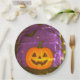 Beeilen Sie sich und greifen Sie sich diese zauberhaften Halloween-Party Papier Teller. Niedlicher Kürbis mit lila Hintergrund und einem gruseligen Riss-Bild für Ihr nicht so beängstigendes Halloween-Party! Ein Teil der Halloween-Party-Kollektion, packen Sie sie alle und haben Ihr Halloween-Stand in diesem Jahr!