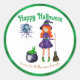 Bunte Hexe und Spider Individuelle Name Halloween Runder Aufkleber
