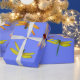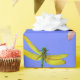 BUNTE LIBELLEN AUF BLAU GESCHENKPAPIER
