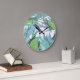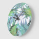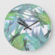 Stilvolle runde Uhr getan in den Schatten des Grüns, des Lavendels, des Aqua und des Türkises, mit abstrakten Grafiken der Libellen im Laub. Türkis nummeriert auf den 12, 3, 6, und die 9-Stunden-Kennzeichen verzieren den äußeren Rand. Fertigen Sie besonders an, um Text dieser reizenden Wanduhr hinzuzufügen. Reizender Zusatz zu jedem möglichem Raum des Hauses oder des Büros und macht den Libellenliebhabern eine ausgezeichnete Geschenkidee.