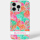 Passen Sie dieses bunte Korallen- und Türkis-Wasserfarben-Muschel-iPhone 15 Pro Max-Case mit Ihrem Namen in einer trendigen modernen CAP-Schrift in Rosa auf Weiß an. Es ist so modern und trendy!