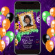 Bunte Neon Halloween Geburtstagsparty Einladung
