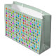 Viele bunte Ostereier auf einer großen grünen Geschenktasche.