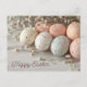 Bunte Ostereier Postkarte mit Frühlingsblumen