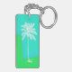 Stilvolle Schlüsselkette, mit Grafiken einer tropischen weißen Palme gegen ein Aqua, ein Blau und einen grünen abstrakten Hintergrund, auf beiden Seiten. Personifizieren Sie den weißen Text, der oben die links Seite laufen lässt. Große Weise, dieses Sommer-Gefühl mit Ihnen alles Jahr zu behalten.