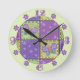 Das perfekte Geschenk für ein quilter: Die Mitte dieser Uhr ist in den bunten Patchworkquadraten in Malvenfarbenem, in lila und in Grünem gemustert - die grünen Quadrate haben auf Schmetterlingen, die malvenfarbenen kleine Blumen genäht. Die Nr. 12, 3, 9 und 6 sind Set auf einer blassen en-grün Einfassung, gemasert im gleichen lila Muster. Für die Erholung der Zahlen anstelle Punkte there´s kleiner Blumen. Ein Entwurf mit einem folkart, Land-Gefühl.