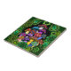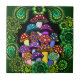 Eine Fliese mit den bunten psychedelischen Pilzen umgeben durch grünes Paisley und grünen Mandalas.