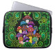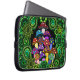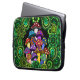 Eine Hülse für Ihre Laptop-Computer mit den bunten psychedelischen Pilzen umgeben durch grünes Paisley und grünen Mandalas.
