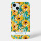 Passen Sie diese bunten modernen Sonnenblumen auf dem teal-gemalten iPhone 15 Plus-Case mit Ihrem Namen in einer trendigen modernen CAP-Schrift in Teal auf Weiß an. Es ist so schön und fröhlich!