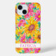 Passen Sie diese bunte moderne gelbe Sonnenblumen mit rosa Zinnie-Malerei iPhone 15 Hülle mit Ihrem Namen in einer trendigen modernen CAP-Schrift in Rosa auf Weiß an. Es ist so schön und fröhlich!