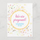 Liebliche Schwangerschaftsankündigung Postkarte mit bunten Konfetti und funkelnden Sternen! Einfach zu anpassen, mit einem niedlichen und frischen Design. Zögern Sie nicht, mich zu kontaktieren, wenn Sie Hilfe benötigen, um diese oder andere Designs in meinem Geschäft zu personalisieren!