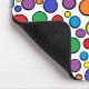 Abstrakte Kunst der Polkapunkte der verschiedenen Farben umrissen im Schwarzen gegen einen weißen Hintergrund.