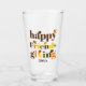 Bunte Typografie und Blätter Friendsgiving fallen Glas. Der Text "Friendsgiving" in bunten Typografie und Herbstblätter in Braun, Orange, Olivgrün und Gelb mit individualisierbarem Datum schmücken diesen Erntedank.