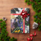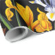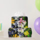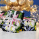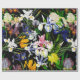 Bunte viktorianische Iris-Blumen auf schwarzem Geschenkpapier