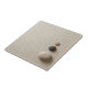 Drei bunte Zensteine an der rechten Seite des Sandhintergrundes.