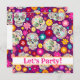 Diese gemusterte Einladung des Spaßzuckerschädels ist für einen speziellen Geburtstag groß, ein Halloween oder einen Tag des toten Ereignisses und ist einfach, mit Ihren eigenen Details besonders anzufertigen - Klicken FERTIGT zu den Änderungstextfarben, Schriftart und für mehr redigierende Wahlen besonders an