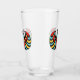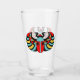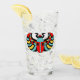 Dieser Glaskrüber für Getränke hat einen bunten ägyptischen Scharfkäfer mit abstrakten Aufschriften in Rot, Blau und Gelb auf der Vorder- und Rückseite.