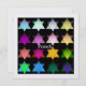Quadratische Einladung umfaßt mit bunten Davidssternen. Abdeckung liest: Pesach. Heben Sie ist vollständig kundengerecht mit sogar Informationen auf. Oder verlassen Sie freien Raum für eine Passahfestkarte.