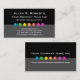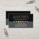 Elegante Visitenkarten in elegantem Schwarzem und im Grau mit einer Reihe der vibrierend farbigen Tupfen.