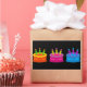 Dieses moderne, kleine Geburtstagskuchen ist großartig für alle Altersgruppen. Die Farben sind schön und lebendig und sehen vor einem schwarzen Hintergrund großartig aus, aber man kann sie in jede gewünschte Farbe ändern. Fügen Sie dem Druck den Namen des Geburtstagsjungen oder Mädchens hinzu, um ihn anzupassen.