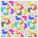 Ursprünglicher Kunstentwurf der bunten Gummienten durch Künstler und Designer Carolyn McFann zwei des schnurrenden Katzen-Studios druckte auf Qualität und kundengerechtem Gewebe für Kinder zu den Erwachsenen.