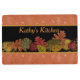 Die bunte Zuhausebodenmatte, die in Orange und in Schwarzem, mit Grafiken des Falles getan wurde, färbte Blätter, über der Mitte. Personifizieren Sie den orangefarbenen Text, um zu lesen, was Sie wollen. Groß für die Küche oder die Waschküche.