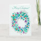 Der Kranz ist eine wunderschöne Weihnachtsdekoration, denn er erinnert uns an die schönen Farben einer wärmeren Jahreszeit. Der Empfänger dieser Karte wird sicherlich lächeln. Original Kunst ist Stift und Tinte auf Aquarell. Bleiben Sie drinnen für Ihre eigenen Grüße und Nachrichten.