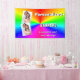 Ein buntes mehrfarbiges helles Neon farbiges graduiertes modernes Muster des grafischen Entwurfs des Regenbogens mit personalisierten Text- und Foto-Vorlagen addieren leicht Ihren eigenen Text, um Ihre eigene coole funky Fahne für Ihr spezielles Partyereignis, -feier oder -geschäft herzustellen. Fertigen Sie besonders an, um die Schriftartart oder -farbe zu ändern.
