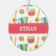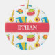 Verzieren Sie Kinderraum mit diesem bunten Einzelteil, das ein Muster ist, das unter Verwendung der Spielzeugmusikinstrumente gemacht wird, die Trommeln, Flöte, Banjo, Tambourine, Akkordeon, Harfe, Geklapper und Trompete miteinschließen! Groß für das wenig funken eine die Liebemusik oder ihr Interesse an der Musik! Schön als dekoratives Stück. Personifizieren Sie mit dem Namen des Kindes.