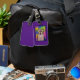 Hübscher mehrfarbiger Grubenstierentwurf auf einem Gepäckumbau mit lila Hintergrund. Vervollkommnen Sie für Hundeliebhaber, Pitbullfans, Tieranwälte und Reisende!