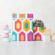 Ein Stammes- ikat Muster in einem Regenbogen der Farben - rosa, orange, gelb, grün, blau und lila. Die Farben werden durch ein Oma-Smith-Häkelarbeitmuster, es hat ein Stückchen eines retro Vibe inspiriert. Diese moderne Artverpackung ist für eine Vielzahl von Gelegenheiten wie einem Geburtstag groß. Sie ist auch für Kinder, Teenager und Erwachsene groß.