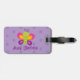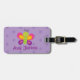 Personalisierter Gepäckumbau, der einen bunten Schmetterling mit einem schönen lila Blumenhintergrund kennzeichnet. Niedlicher und Spaßentwurf für Special für Mädchen. Kundenspezifisches mit Monogramm Geschenk.