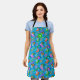 Dieses lustige und farbenfrohe JRT Pool-Party in der gesamten Schürze für eine Parson/Jack Russell Terrier Mom oder Papa zeichnet sich durch vier verschiedene JRTs/PRTs aus, die eine abwechslungsreiche braune und schwarze Kopf/Körpermarkierung aufweisen und einen hübschen Hundekopf, der auf den bunten, rosa, orangefarbenen und Limonen Schwimmbeckenmatten Matten stehend ist, mit einer Tenniskugel in einem hellblau-blauem Schwimmbecken, alle tragen einen bunten Schwimmring (mit winzigen JRT-Mustern) um ihren Hals und umgeben von bunten Schwimmnudeln und Bälle und gelbsternförmigen schwimmenden Kauspielzeug - Parson / Jack Russell Pool Party © katz_d_zynes 2019