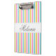 Bunter Streifen-Muster-individueller Name Klemmbrett