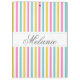 Buntes und trendy Rosa, Aquablau, Gelb, weißes gestreiftes Muster mit Bereich auf Mitte für individuellen Namen.