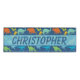 Buntes Dinosaurier-Silhouettemuster, das Sie personifizieren können und Ihren eigenen Namen addieren. Tyrannosaurus Rex, titanosaurs, Triceratop, Raubvögel, Ankylosaurs, Dino-Vögel, Stegosaurus, Apatosaurus, Pteranodon und mehr in einem bunten Muster im blauen Hintergrund und Dinosaurier in Grünem, in Blauem, in Gelbem und Orange.
