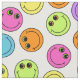 Emoji stellt in Orange, in rosa, in Lila, in Grünem, in Blauem und Gelb auf einer weißen Hintergrundabdeckung dieses Spaßgewebe gegenüber.