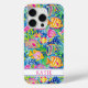 Passen Sie diese farbenfrohe Unterwasserszene mit Fischen in allen verschiedenen hellen Farben an iPhone 15 Pro-Hülle mit Ihrem Namen in einer trendigen modernen CAP-Schrift in Rosa auf Weiß. Es ist so modern und trendy!