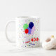 Eine lustige, fröhliche und farbenfrohe 40. Geburtstags-Tasse mit Ballons und Konfetti.