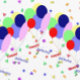 Ein lustiger, fröhlicher und farbenfroher 40. Geburtstagsaufkleber mit Ballons und Konfetti.