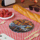 Buntes Karussell-Pferd und fröhliche gehen Runde Pappteller