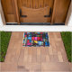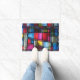 Schöne Fußmatte mit buntem modernem abstraktem Muster mit einem Blick des befleckten Glases ähnlich einer Mondrian Zusammensetzung