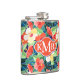 Buntes Monogramm des Hibiskus-Muster-| Flachmann