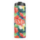 Buntes Monogramm des Hibiskus-Muster-| Thermosbecher