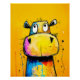 Mit seinen riesigen, staunenden Augen und der runden, gelben Schnauze zaubert dieses kleine Hippo jedem Betrachter sofort ein Lächeln ins Gesicht. Die wilden, schwarzen Outlines und die fröhlichen Farbakzente in Blau, Pink und Rot verleihen der Illustration einen einzigartigen Charakter.