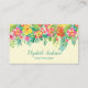 Diese Geschäftskarte hat eine bunte Grenze der tropischen Blumen und des Grüns auf einem weichen gelben Hintergrund mit einem subtilen Muster. Die Rückseite hat die rosa Flamingos, die unter tropischen Blumen stehend sind. Dieser Entwurf ist für viel Gebrauch einschließlich Floristen, Event-Planer, Reisegeschäfte, etc. passend.