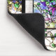 Vintages Tiffany beflecktes Glasfenster-Stück auf diesem Mousepad. Die Blumen sind Clematis-und Trompete-Rebe.